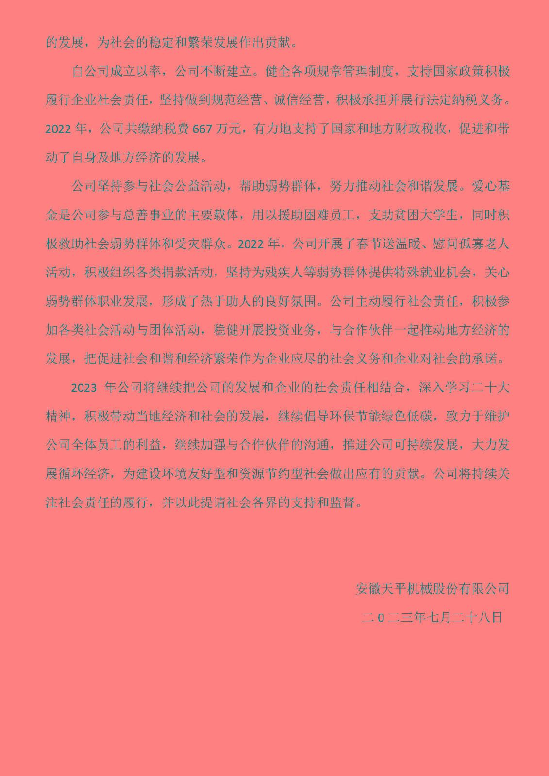 2022年度社會責(zé)任報告(天平公司)